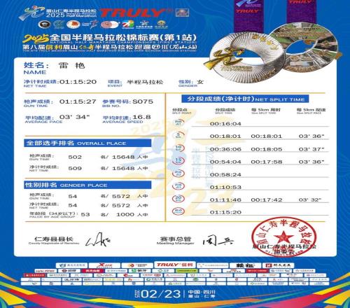 今年仁寿半马,雷艳以115完赛