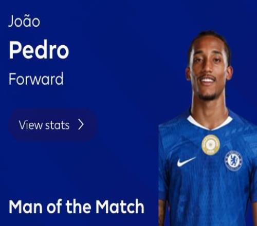 替补传射,若昂佩德罗当选切尔西vs西汉姆全场最佳球员